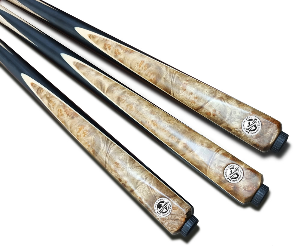 1-piece Ash Cue Set, made with golden burl and maple splices, for pool or snooker